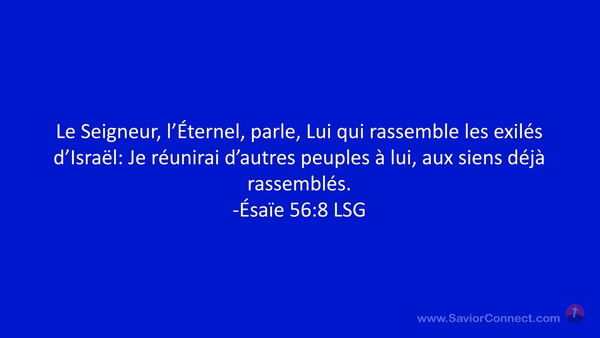 Le Seigneur, l'Éternel, parle, Lui qui rassemble les exilés d'Israël: Je réunirai d'autres peuples à lui, aux siens déjà rassemblés. -Ésaïe 56:8 LSG