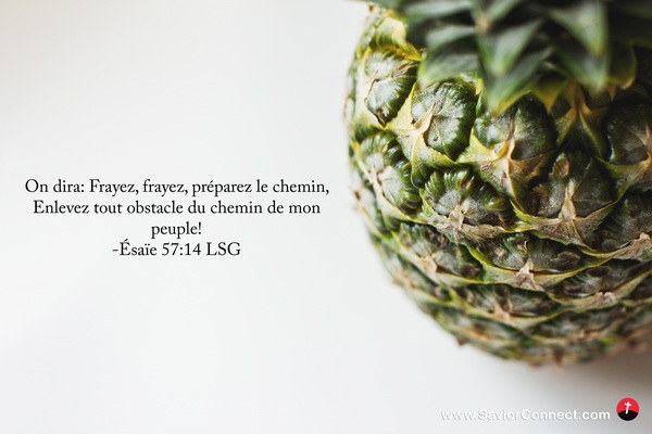 On dira: Frayez, frayez, préparez le chemin, Enlevez tout obstacle du chemin de mon peuple! -Ésaïe 57:14 LSG