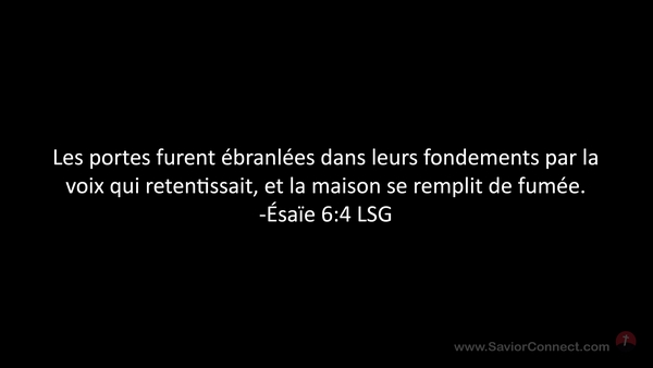 Les portes furent ébranlées dans leurs fondements par la voix qui retentissait, et la maison se remplit de fumée. -Ésaïe 6:4 LSG