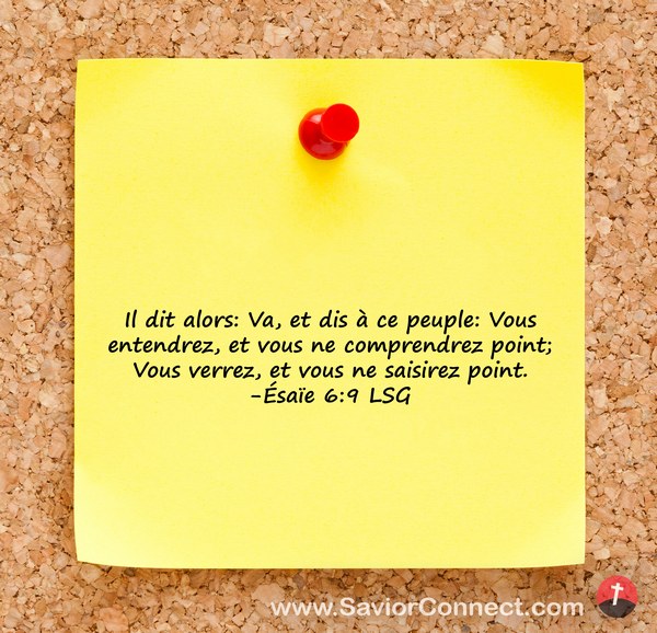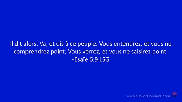 Il dit alors: Va, et dis à ce peuple: Vous entendrez, et vous ne comprendrez point; Vous verrez, et vous ne saisirez point. -Ésaïe 6:9 LSG