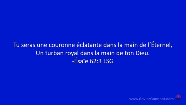 Tu seras une couronne éclatante dans la main de l'Éternel, Un turban royal dans la main de ton Dieu. -Ésaïe 62:3 LSG