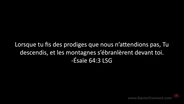 Lorsque tu fis des prodiges que nous n'attendions pas, Tu descendis, et les montagnes s'ébranlèrent devant toi. -Ésaïe 64:3 LSG