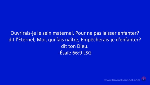 Ouvrirais-je le sein maternel, Pour ne pas laisser enfanter? dit l'Éternel; Moi, qui fais naître, Empêcherais-je d'enfanter? dit ton Dieu. -Ésaïe 66:9 LSG