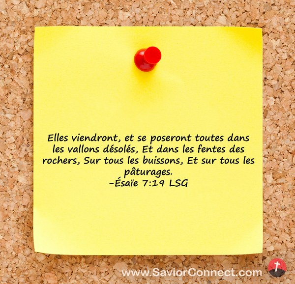 Elles viendront, et se poseront toutes dans les vallons désolés, Et dans les fentes des rochers, Sur tous les buissons, Et sur tous les pâturages. -Ésaïe 7:19 LSG