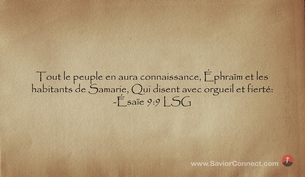 Tout le peuple en aura connaissance, Éphraïm et les habitants de Samarie, Qui disent avec orgueil et fierté: -Ésaïe 9:9 LSG