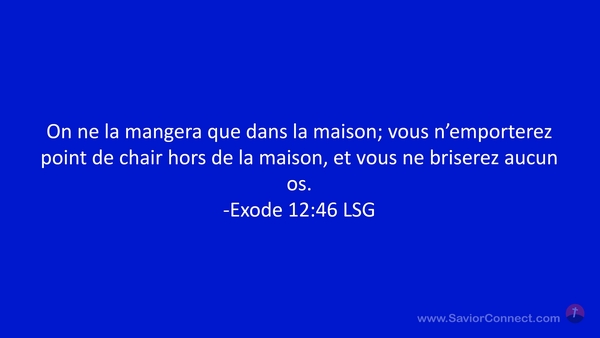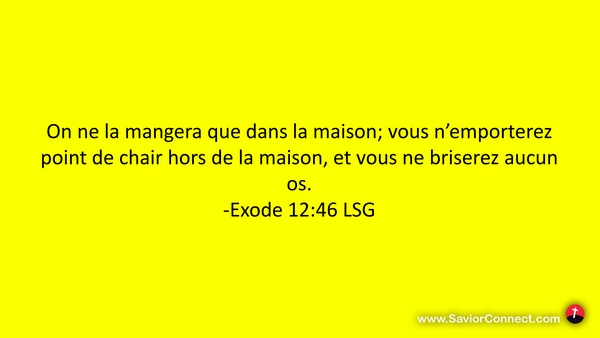 On ne la mangera que dans la maison; vous n'emporterez point de chair hors de la maison, et vous ne briserez aucun os. -Exode 12:46 LSG