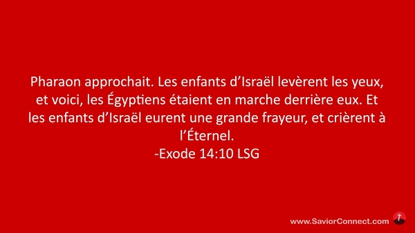 Pharaon approchait. Les enfants d'Israël levèrent les yeux, et voici, les Égyptiens étaient en marche derrière eux. Et les enfants d'Israël eurent une grande frayeur, et crièrent à l'Éternel. -Exode 14:10 LSG