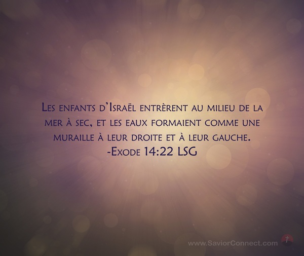 Les enfants d'Israël entrèrent au milieu de la mer à sec, et les eaux formaient comme une muraille à leur droite et à leur gauche. -Exode 14:22 LSG