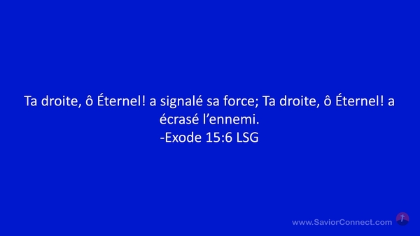 Ta droite, ô Éternel! a signalé sa force; Ta droite, ô Éternel! a écrasé l'ennemi. -Exode 15:6 LSG