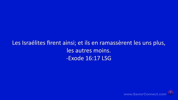 Les Israélites firent ainsi; et ils en ramassèrent les uns plus, les autres moins. -Exode 16:17 LSG