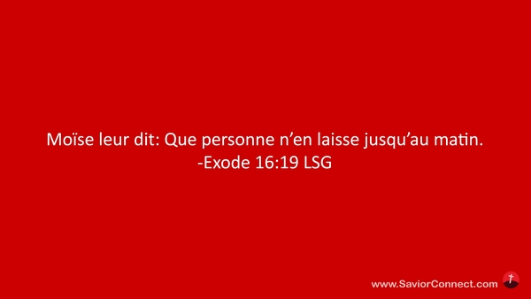 Moïse leur dit: Que personne n'en laisse jusqu'au matin. -Exode 16:19 LSG