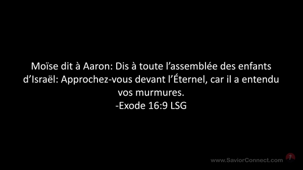 Moïse dit à Aaron: Dis à toute l'assemblée des enfants d'Israël: Approchez-vous devant l'Éternel, car il a entendu vos murmures. -Exode 16:9 LSG