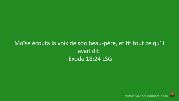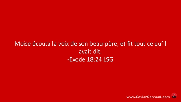 Moïse écouta la voix de son beau-père, et fit tout ce qu'il avait dit. -Exode 18:24 LSG