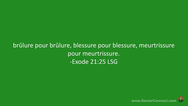 brûlure pour brûlure, blessure pour blessure, meurtrissure pour meurtrissure. -Exode 21:25 LSG