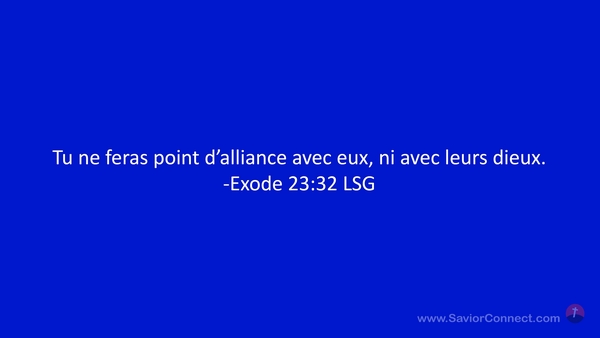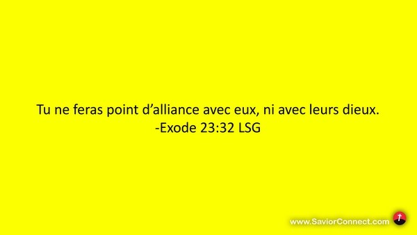 Tu ne feras point d'alliance avec eux, ni avec leurs dieux. -Exode 23:32 LSG