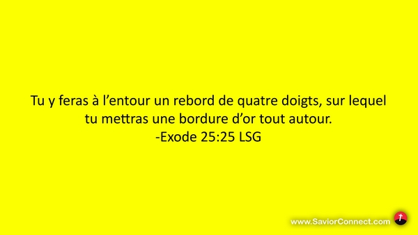 Tu y feras à l'entour un rebord de quatre doigts, sur lequel tu mettras une bordure d'or tout autour. -Exode 25:25 LSG