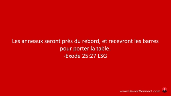Les anneaux seront près du rebord, et recevront les barres pour porter la table. -Exode 25:27 LSG