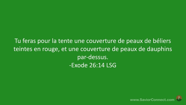 Tu feras pour la tente une couverture de peaux de béliers teintes en rouge, et une couverture de peaux de dauphins par-dessus. -Exode 26:14 LSG
