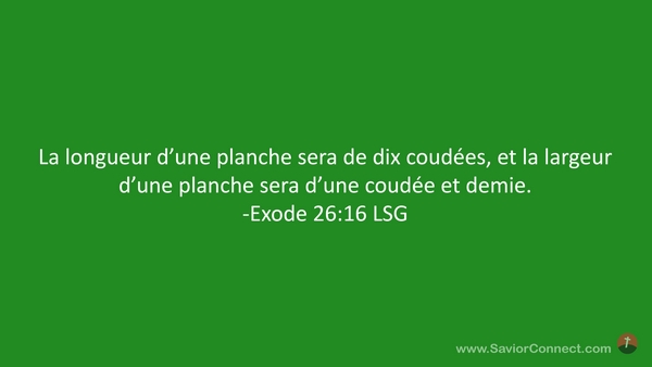 La longueur d'une planche sera de dix coudées, et la largeur d'une planche sera d'une coudée et demie. -Exode 26:16 LSG