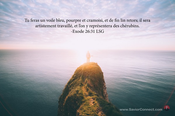 Tu feras un voile bleu, pourpre et cramoisi, et de fin lin retors; il sera artistement travaillé, et l'on y représentera des chérubins. -Exode 26:31 LSG