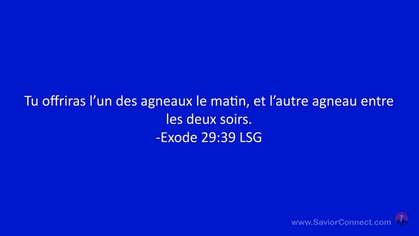 Tu offriras l'un des agneaux le matin, et l'autre agneau entre les deux soirs. -Exode 29:39 LSG