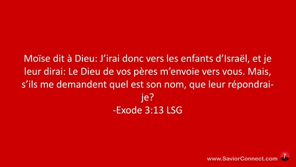 Moïse dit à Dieu: J'irai donc vers les enfants d'Israël, et je leur dirai: Le Dieu de vos pères m'envoie vers vous. Mais, s'ils me demandent quel est son nom, que leur répondrai-je? -Exode 3:13 LSG