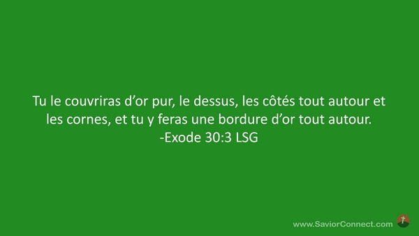Tu le couvriras d'or pur, le dessus, les côtés tout autour et les cornes, et tu y feras une bordure d'or tout autour. -Exode 30:3 LSG