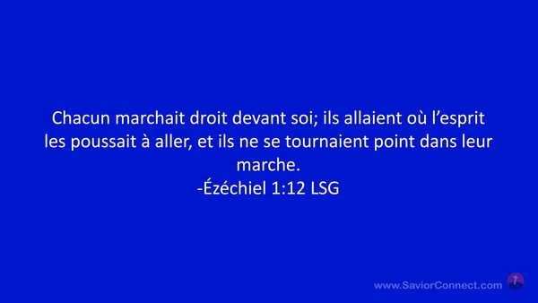Chacun marchait droit devant soi; ils allaient où l'esprit les poussait à aller, et ils ne se tournaient point dans leur marche. -Ézéchiel 1:12 LSG