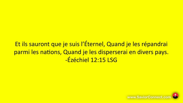 Et ils sauront que je suis l'Éternel, Quand je les répandrai parmi les nations, Quand je les disperserai en divers pays. -Ézéchiel 12:15 LSG