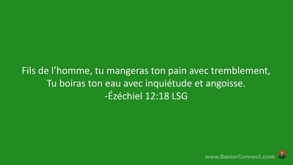 Fils de l'homme, tu mangeras ton pain avec tremblement, Tu boiras ton eau avec inquiétude et angoisse. -Ézéchiel 12:18 LSG