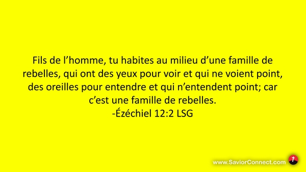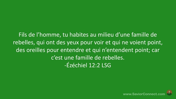 Fils de l'homme, tu habites au milieu d'une famille de rebelles, qui ont des yeux pour voir et qui ne voient point, des oreilles pour entendre et qui n'entendent point; car c'est une famille de rebelles. -Ézéchiel 12:2 LSG