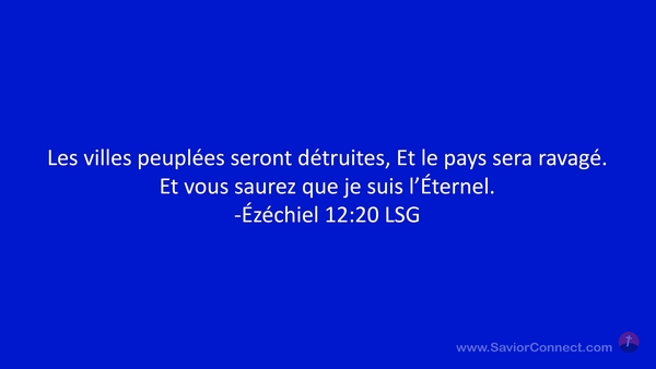Les villes peuplées seront détruites, Et le pays sera ravagé. Et vous saurez que je suis l'Éternel. -Ézéchiel 12:20 LSG