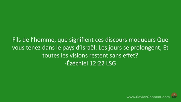 Fils de l'homme, que signifient ces discours moqueurs Que vous tenez dans le pays d'Israël: Les jours se prolongent, Et toutes les visions restent sans effet? -Ézéchiel 12:22 LSG
