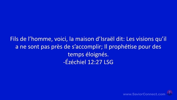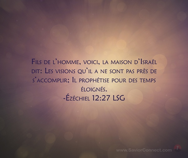 Fils de l'homme, voici, la maison d'Israël dit: Les visions qu'il a ne sont pas près de s'accomplir; Il prophétise pour des temps éloignés. -Ézéchiel 12:27 LSG