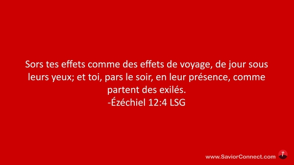 Sors tes effets comme des effets de voyage, de jour sous leurs yeux; et toi, pars le soir, en leur présence, comme partent des exilés. -Ézéchiel 12:4 LSG