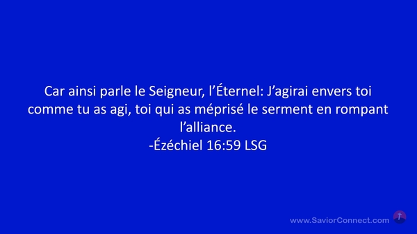 Car ainsi parle le Seigneur, l'Éternel: J'agirai envers toi comme tu as agi, toi qui as méprisé le serment en rompant l'alliance. -Ézéchiel 16:59 LSG
