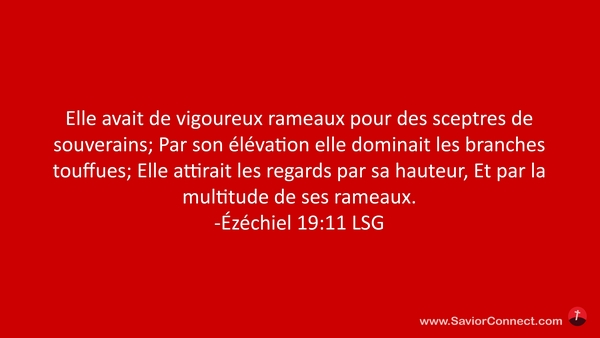 Elle avait de vigoureux rameaux pour des sceptres de souverains; Par son élévation elle dominait les branches touffues; Elle attirait les regards par sa hauteur, Et par la multitude de ses rameaux. -Ézéchiel 19:11 LSG
