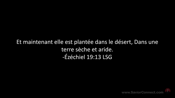 Et maintenant elle est plantée dans le désert, Dans une terre sèche et aride. -Ézéchiel 19:13 LSG