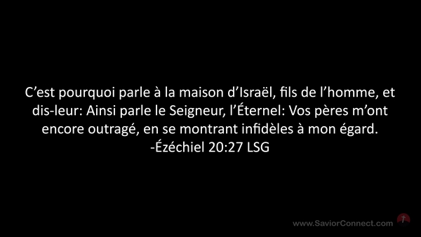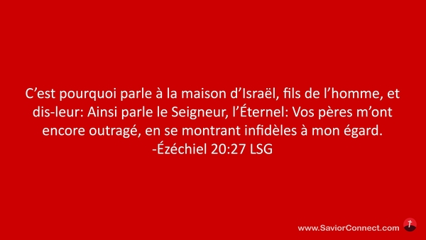 C'est pourquoi parle à la maison d'Israël, fils de l'homme, et dis-leur: Ainsi parle le Seigneur, l'Éternel: Vos pères m'ont encore outragé, en se montrant infidèles à mon égard. -Ézéchiel 20:27 LSG