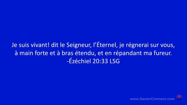Je suis vivant! dit le Seigneur, l'Éternel, je régnerai sur vous, à main forte et à bras étendu, et en répandant ma fureur. -Ézéchiel 20:33 LSG
