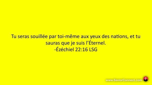Tu seras souillée par toi-même aux yeux des nations, et tu sauras que je suis l'Éternel. -Ézéchiel 22:16 LSG