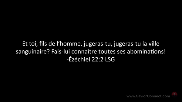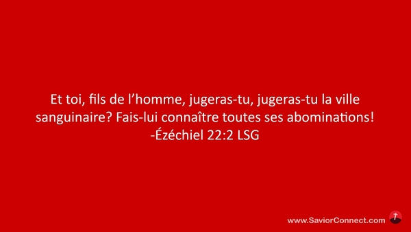 Et toi, fils de l'homme, jugeras-tu, jugeras-tu la ville sanguinaire? Fais-lui connaître toutes ses abominations! -Ézéchiel 22:2 LSG