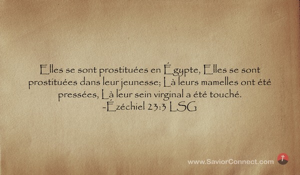 Elles se sont prostituées en Égypte, Elles se sont prostituées dans leur jeunesse; Là leurs mamelles ont été pressées, Là leur sein virginal a été touché. -Ézéchiel 23:3 LSG