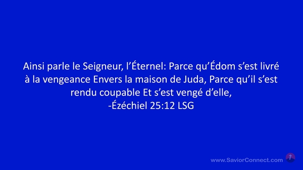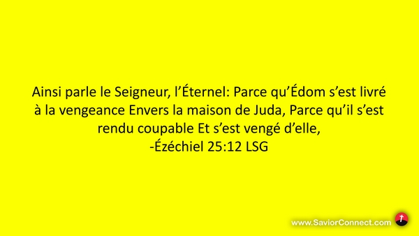 Ainsi parle le Seigneur, l'Éternel: Parce qu'Édom s'est livré à la vengeance Envers la maison de Juda, Parce qu'il s'est rendu coupable Et s'est vengé d'elle, -Ézéchiel 25:12 LSG