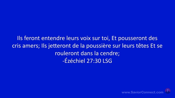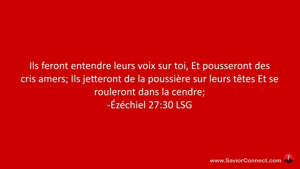 Ils feront entendre leurs voix sur toi, Et pousseront des cris amers; Ils jetteront de la poussière sur leurs têtes Et se rouleront dans la cendre; -Ézéchiel 27:30 LSG