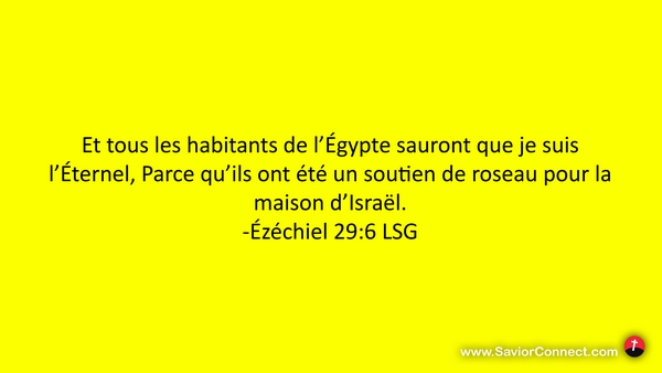 Et tous les habitants de l'Égypte sauront que je suis l'Éternel, Parce qu'ils ont été un soutien de roseau pour la maison d'Israël. -Ézéchiel 29:6 LSG