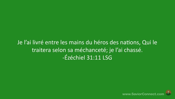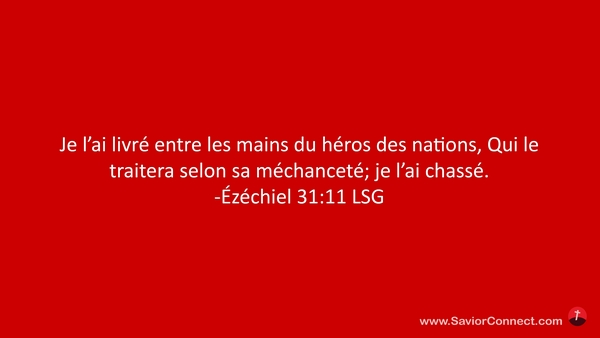 Je l'ai livré entre les mains du héros des nations, Qui le traitera selon sa méchanceté; je l'ai chassé. -Ézéchiel 31:11 LSG