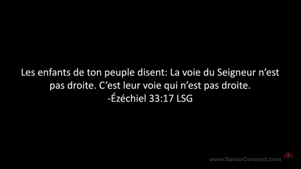 Les enfants de ton peuple disent: La voie du Seigneur n'est pas droite. C'est leur voie qui n'est pas droite. -Ézéchiel 33:17 LSG