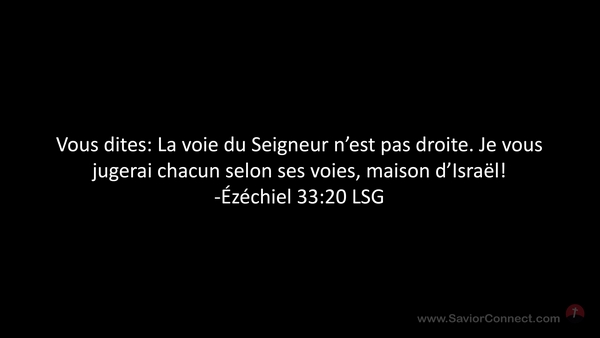 Vous dites: La voie du Seigneur n'est pas droite. Je vous jugerai chacun selon ses voies, maison d'Israël! -Ézéchiel 33:20 LSG