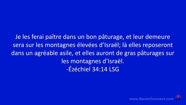 Je les ferai paître dans un bon pâturage, et leur demeure sera sur les montagnes élevées d'Israël; là elles reposeront dans un agréable asile, et elles auront de gras pâturages sur les montagnes d'Israël. -Ézéchiel 34:14 LSG